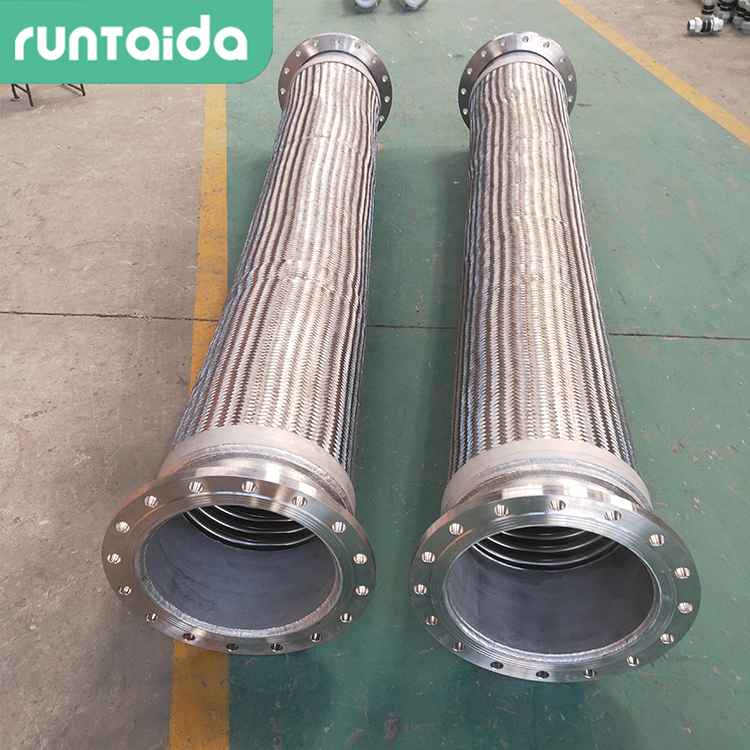 不銹鋼金屬軟管內部的波紋管使具有柔韌性、伸縮性,根據使用環(huán)境以及參數選用與其相匹配的材質。外層的編織網套能夠保護內層的波紋管,使其具有較高的承壓能力。連接方式可選用法蘭、接管、螺紋以及卡箍等形式,連接方便可用于多種流體介質輸送管道。采用接管對接焊接連接方式的,沒有泄露問題,強度高、使用壽命長,適用于壓力較高的使用工況。常用于石油化工、醫(yī)藥等工況環(huán)境。一端為平焊法蘭,另一端為松套法蘭的結構。連接方便且螺栓容易對中,防止了金屬軟管扭轉。